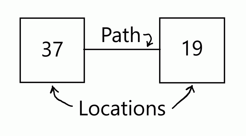 While this takes care of a majority of situations, there are times when you may want to alter a location description based on whether or not the player has already visited a diffent location in the game. Let’s look at a situation based on a section of the actual game map.
